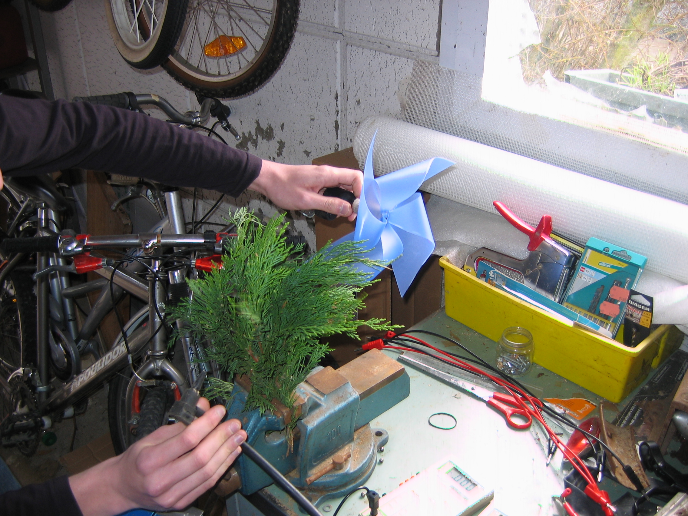 Ensuite, lorsque l'on se situe à une distance de 5 cm entre l'eolienne et le compresseur, on peut remarquer que la valeur obtenue sans obstacle diminue environ de moitié avec les cyprès entre les deux (on passe de 81.3mV à 48.6mV).